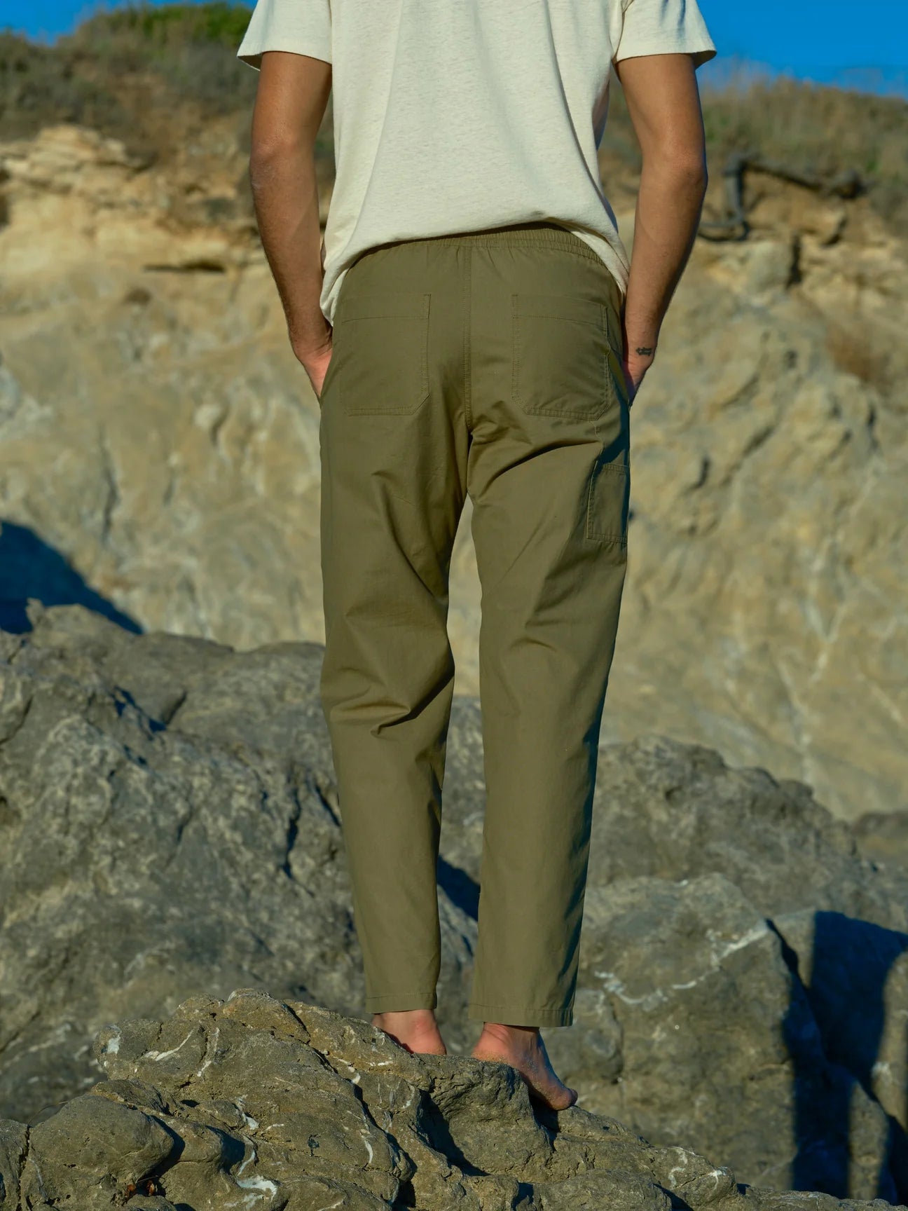 Because you are the ultimate man, we designed the ultimate pants. They have everything you need to reach new heights: an elastic waistband with a hidden drawcord, pockets aplenty, a gusset in the crotch for a perfect fit, and slightly tapered legs. Easy!