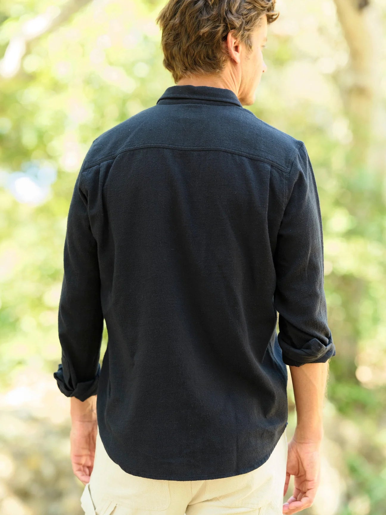 A wardrobe essential, this relaxed-fit shirt is crafted from premium cotton flannel that is brushed to soft perfection. In a rich, deep black, this shirt strikes the ideal balance between casual comfort and elevated style.