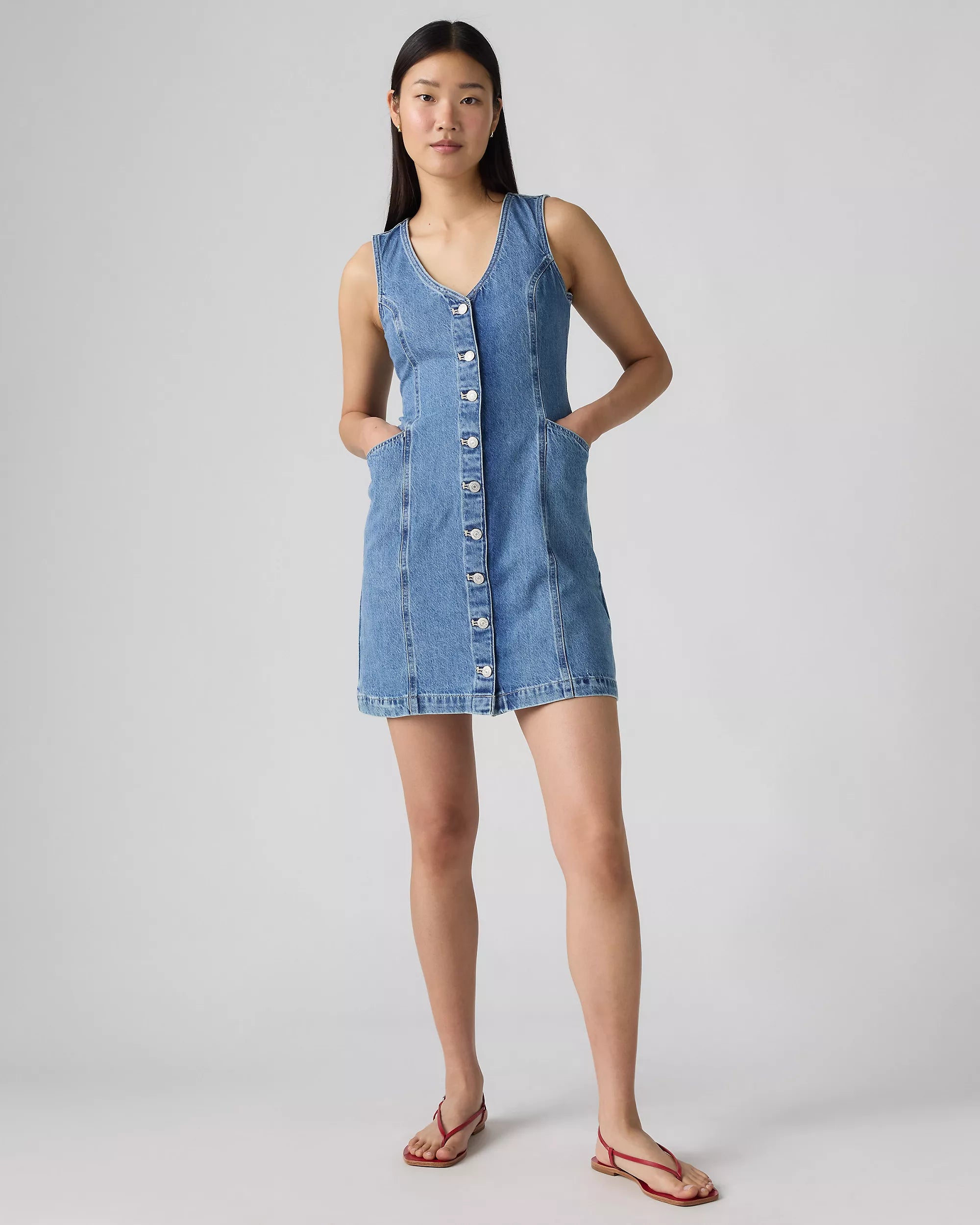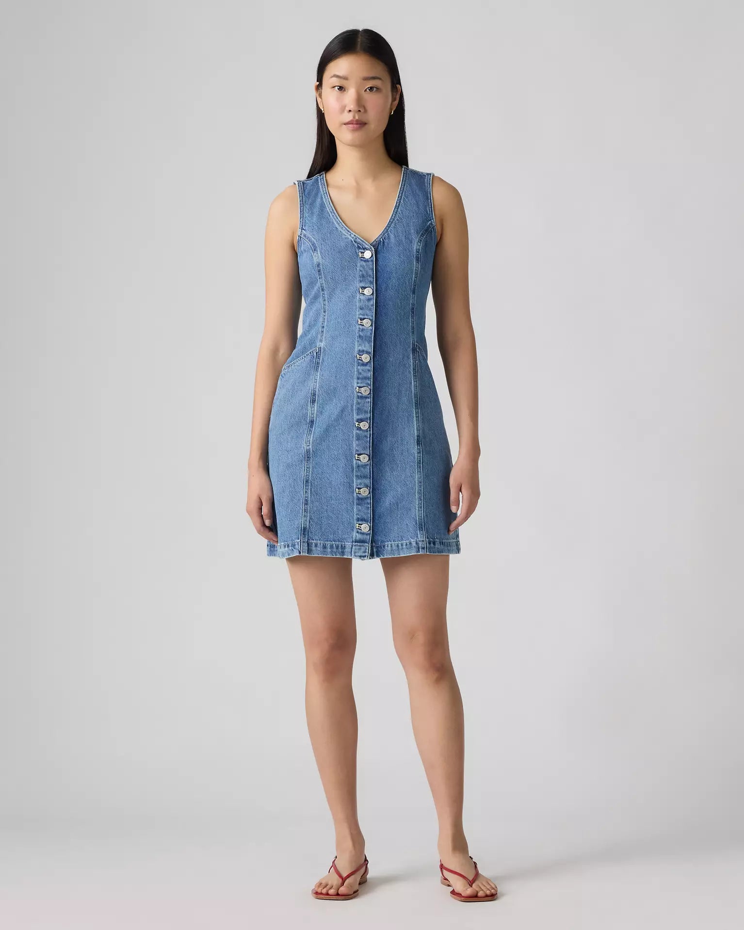 Sleek with a little bit of structure, our Vianna Vest Dress is an easy grab-and-throw-on. We designed it with a V-neckline, a classic button-up front and an easy above-the-knee length.