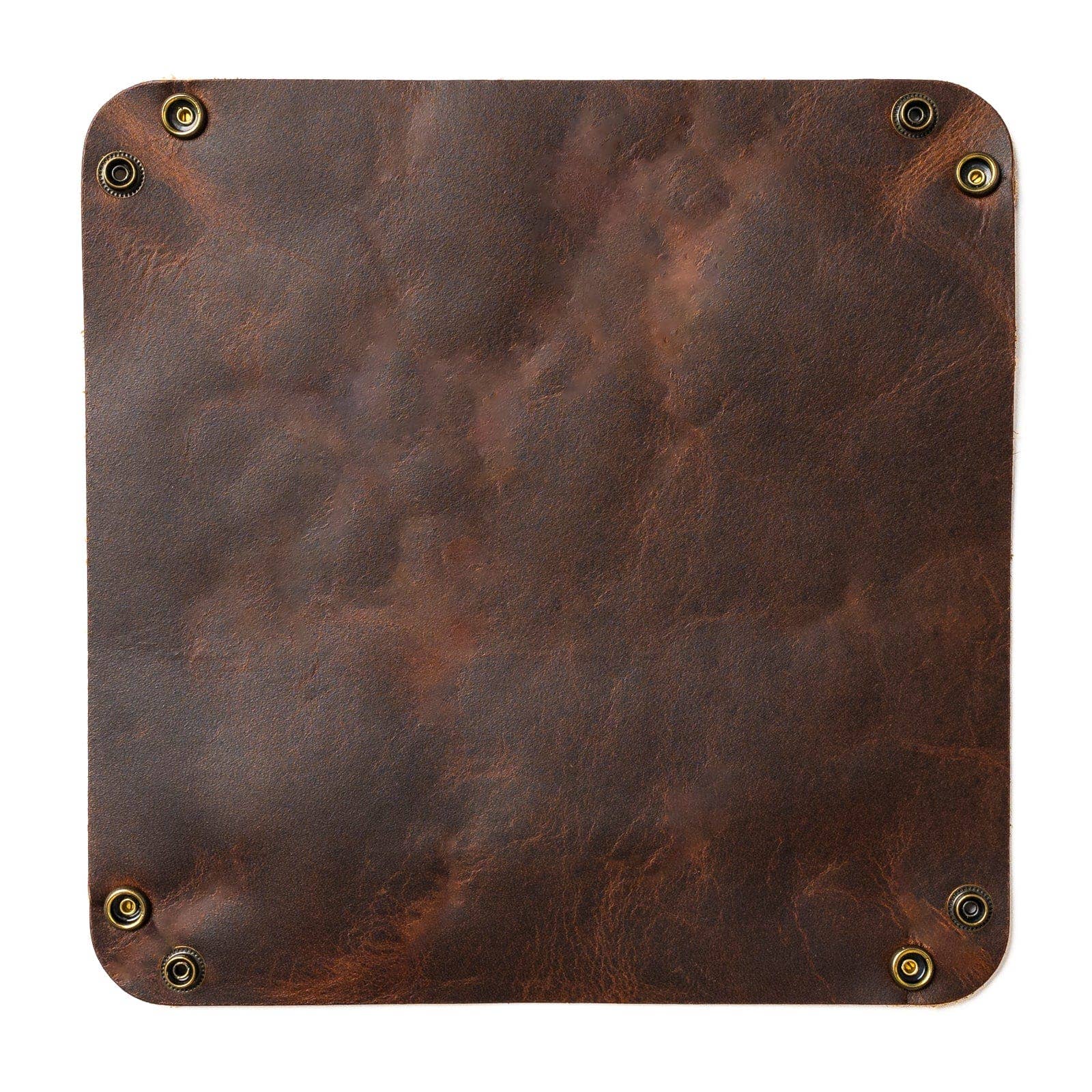 Throw your keys in our Leather Valet Tray and stop scratching your tables. Our valet tray keeps whatever was in your pockets organized and looking great. Perfect for anyone who has a pocket full at the end of the day. Your bedside table never looked so good. Our full-grain leather means your tray will develop patina each time you use it. Our solid brass snaps have a satisfying click that ensures your goods are secure. Unsnap the tray and it lays flat perfect for storage. We take a lot of pride in our work and back each valet tray with a lifetime guarantee.