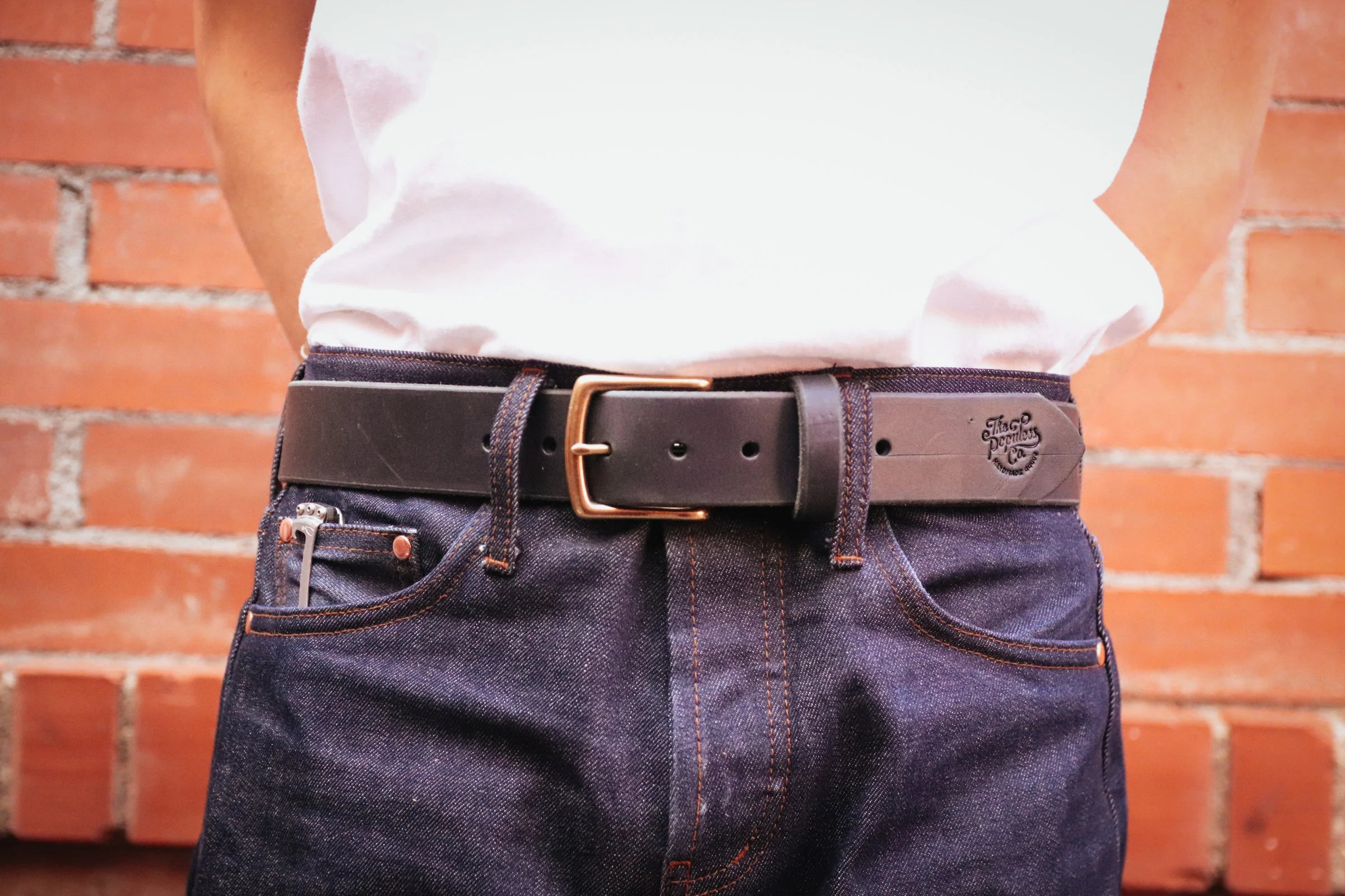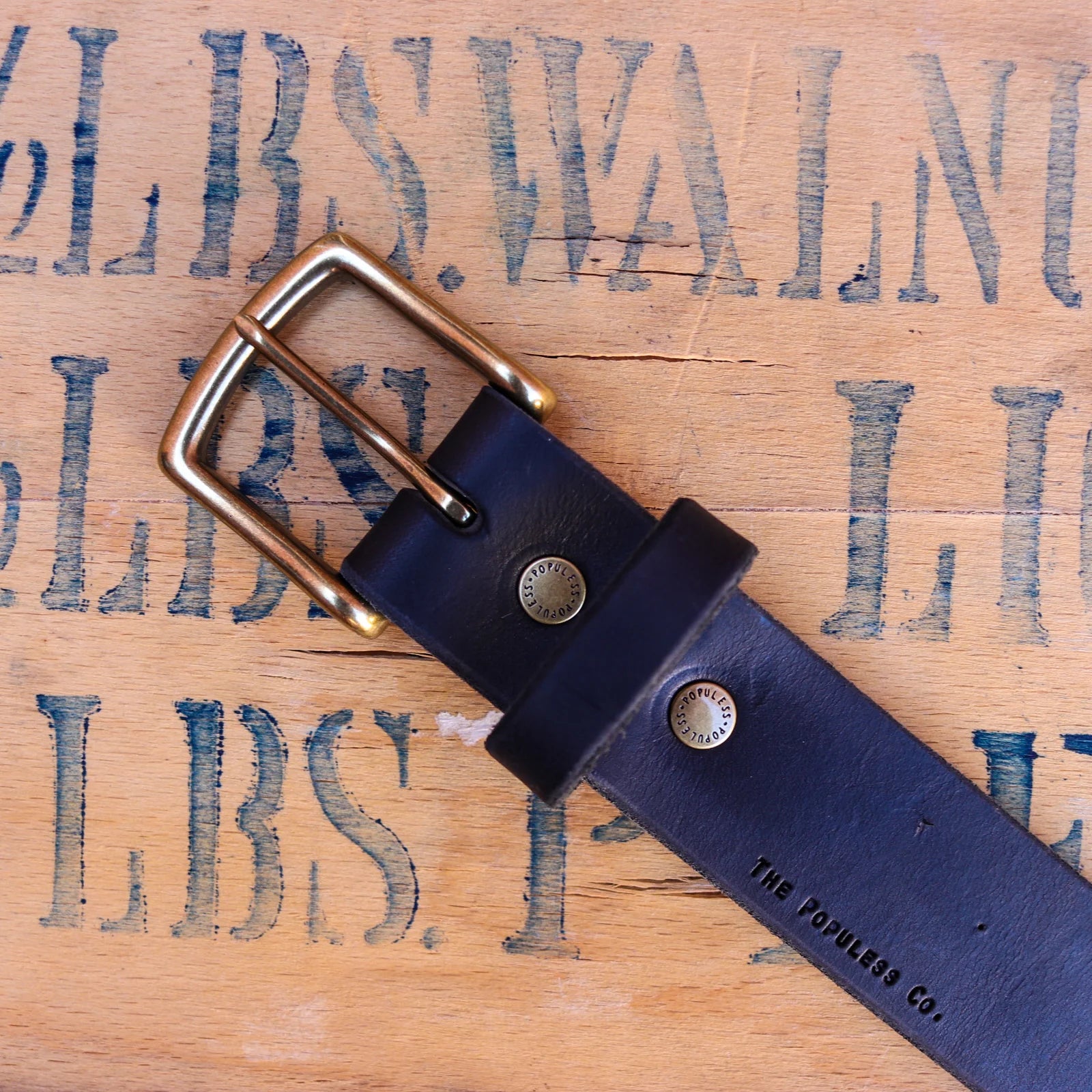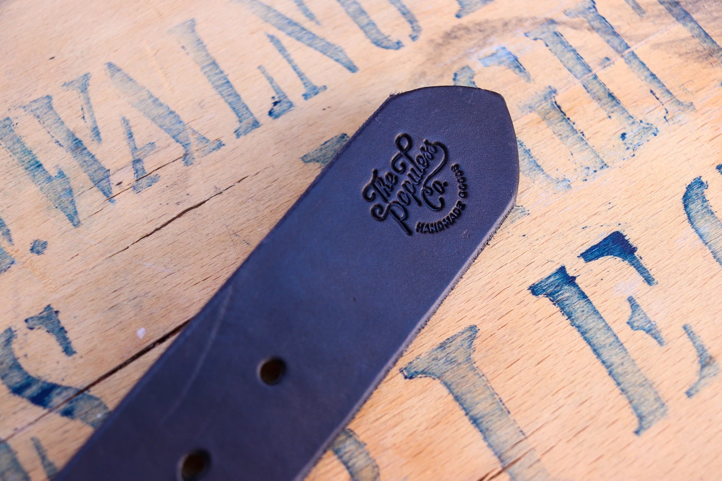The Keho Belt 1.5" width (standard) timeless design, cut from 10/12oz Latigo Leather. There is some variance between belt thicknesses. We use a heavier weight leather so your belt will be able to handle anything you through its way. These belts have a stiff rigidity to them right away and in time with wear break in beautifully. Used for quality, durability and built for your journey. "The Populess Co." embossed on the tip. Note each piece of natural leather we use has its own characteristics and imperfections, just like the people that surround us.
