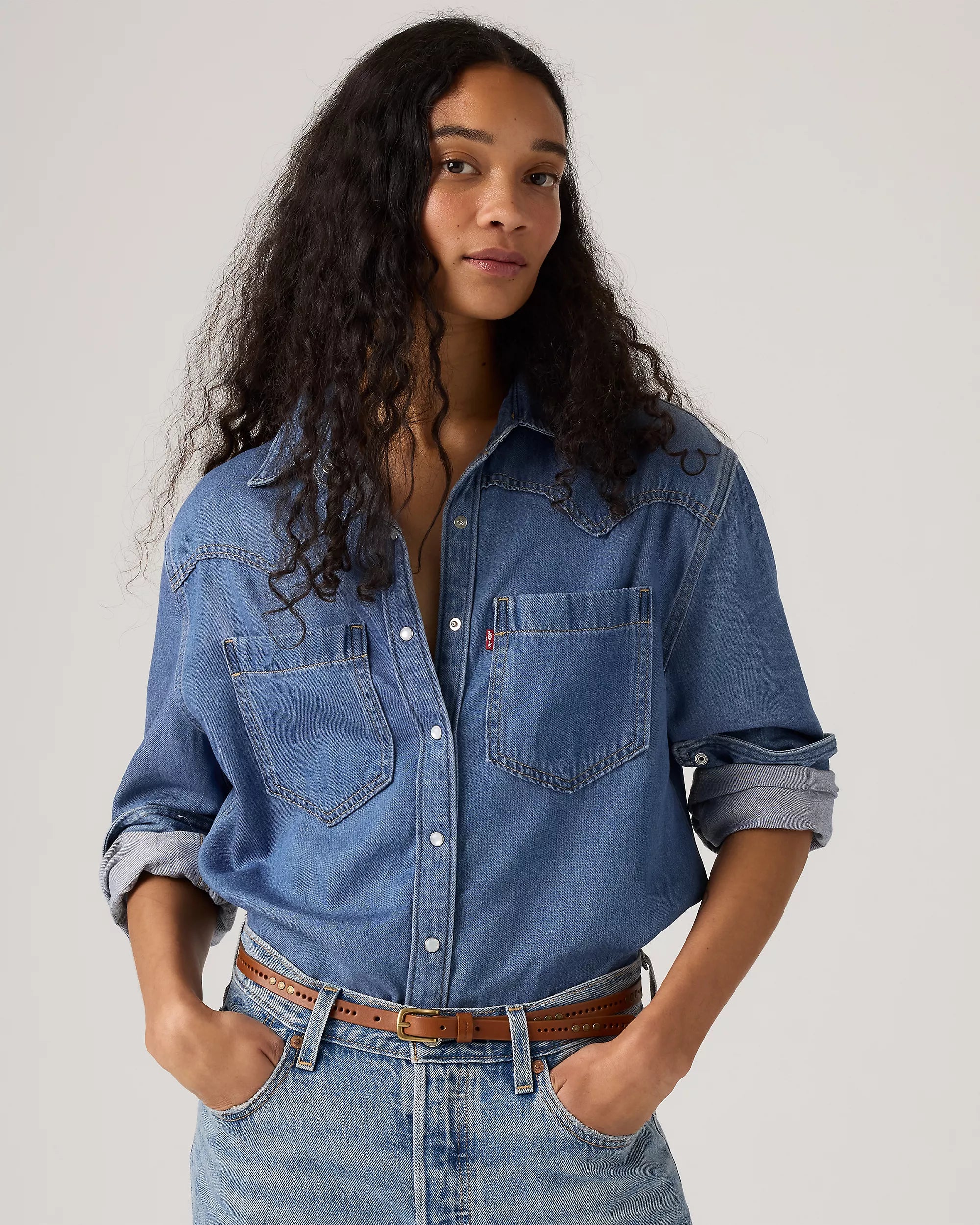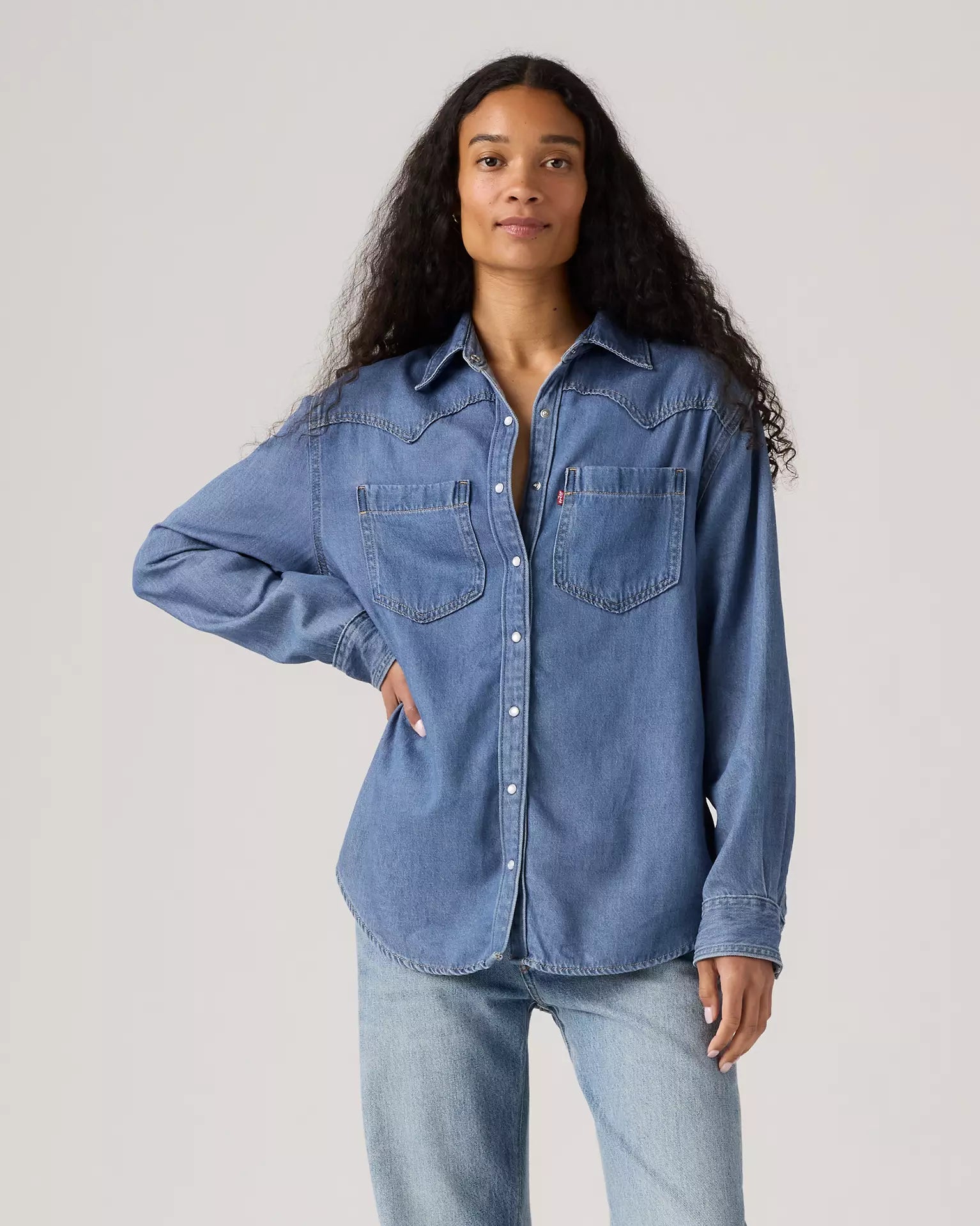 Cowboy boots not included. Our Teodora Western Shirt is a feminine take on a western staple, with a classic snap-button front, two patch pockets, a relaxed fit and a western-inspired yoke design.