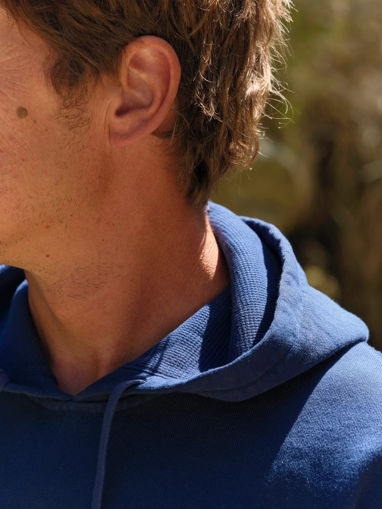 Hefty Cotton French Terry that holds up beautifully, and a hood lined with Waffle Jersey to keep you warm. The relaxed fit is comfortable but not oversized.