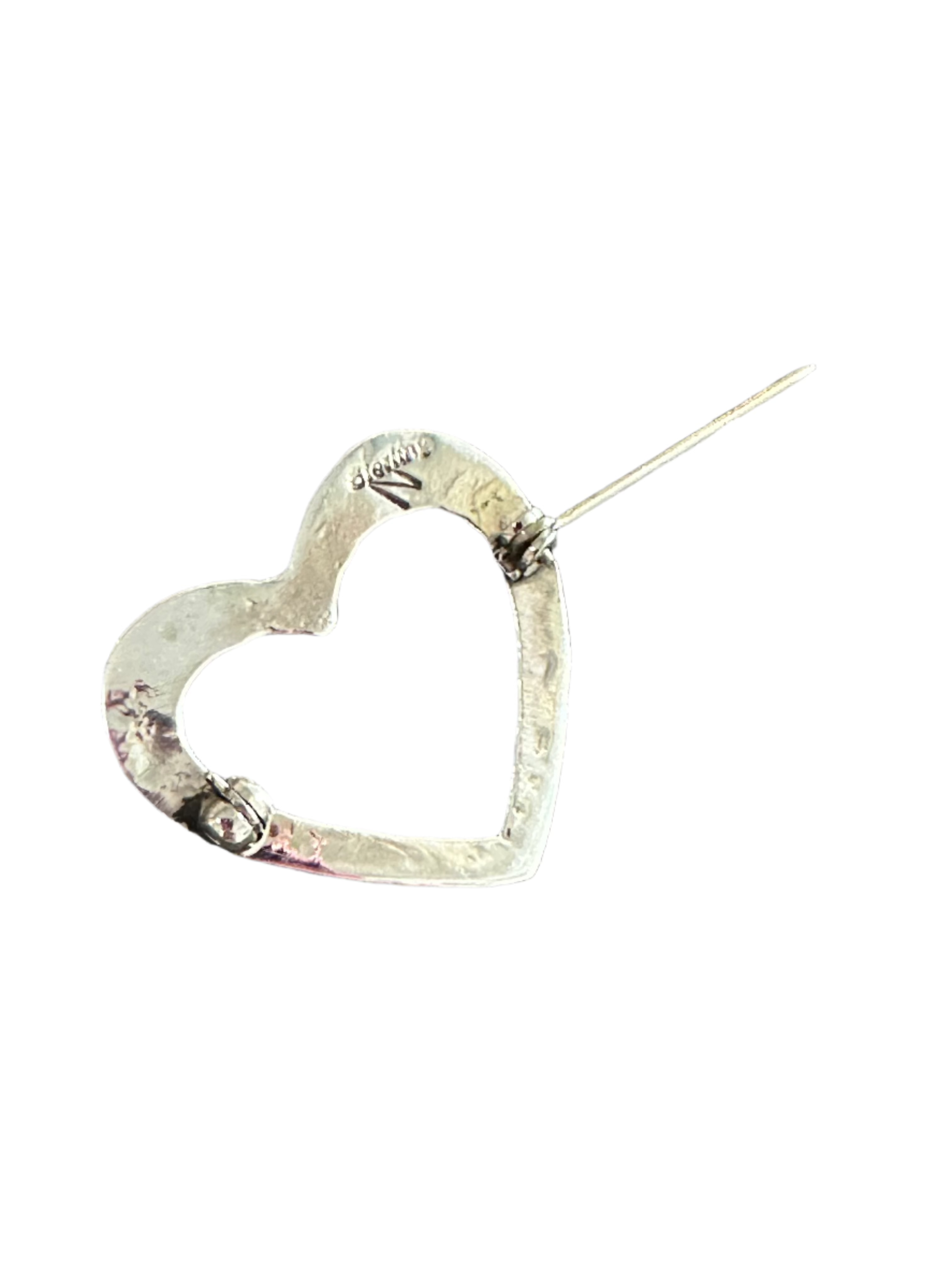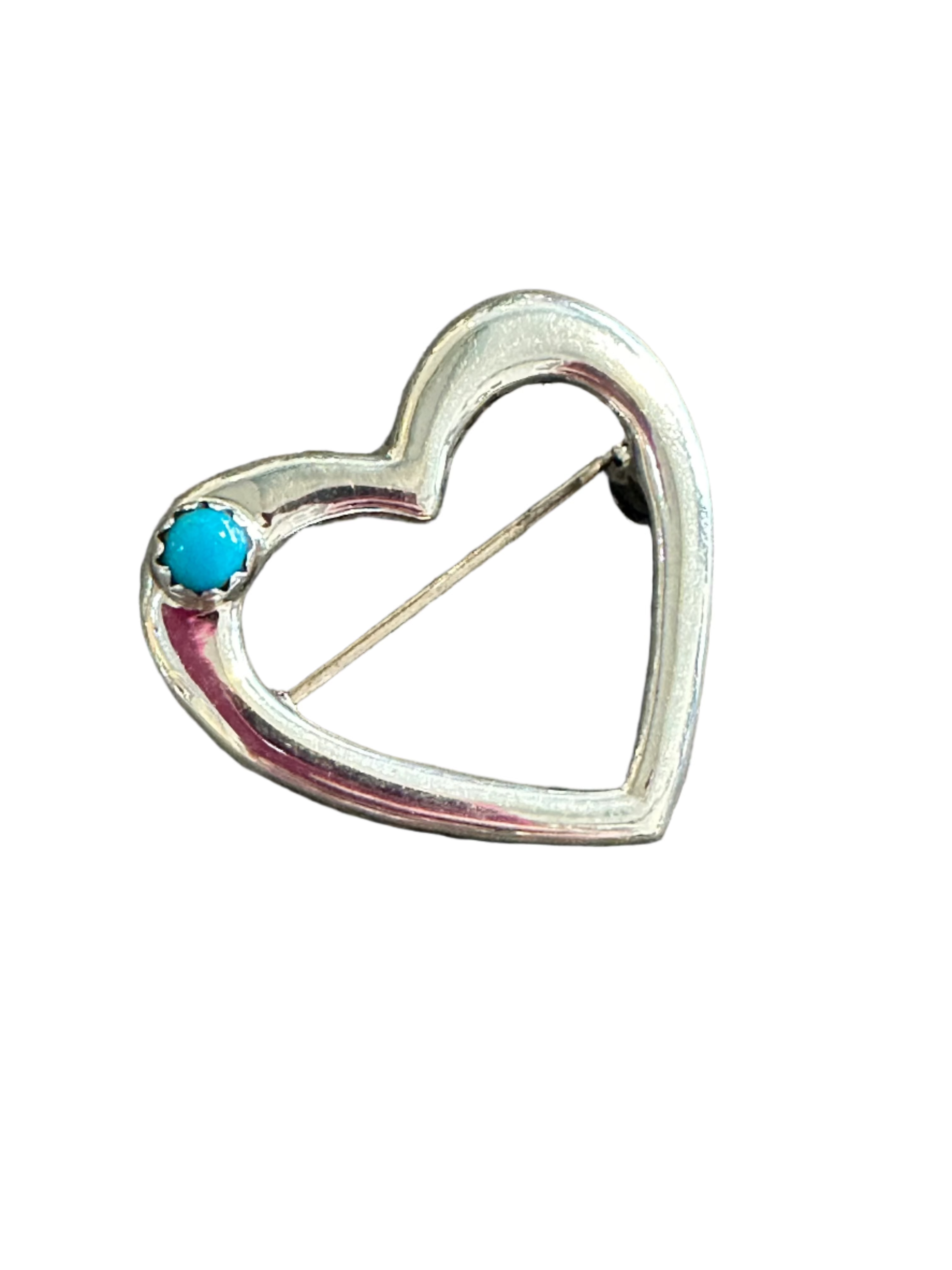 This sterling silver cast open heart pin has a 4mm or free form turquoise stone at the top.
