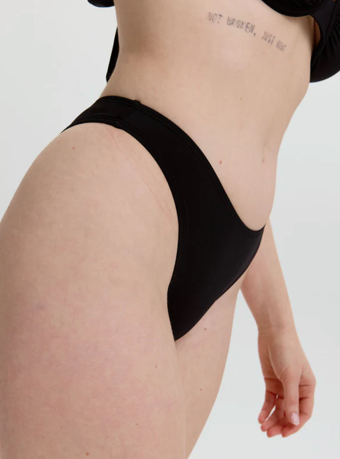 Minimalist chic with a leg-lengthening cut. Semi-coverage at the back ensures style meets functionality. Flaunt beach confidence in the sleek simplicity of this high leg bikini bottom.