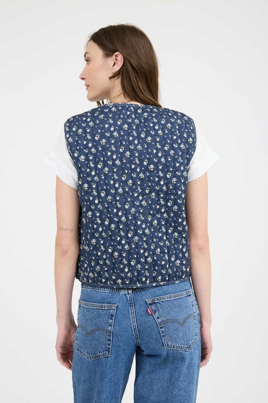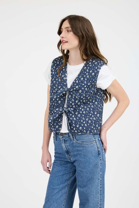 A front tie quilted vest that is the perfect layer piece for these cooler months. Just throw on and go with a pair of jeans or over a chunky sweater!