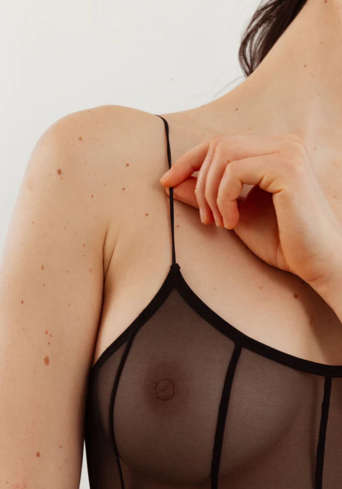Indulge in pure seduction: thin straps, elongating seams, stretch mesh, super high leg, and cheeky thong back – all in one stunning bodysuit.