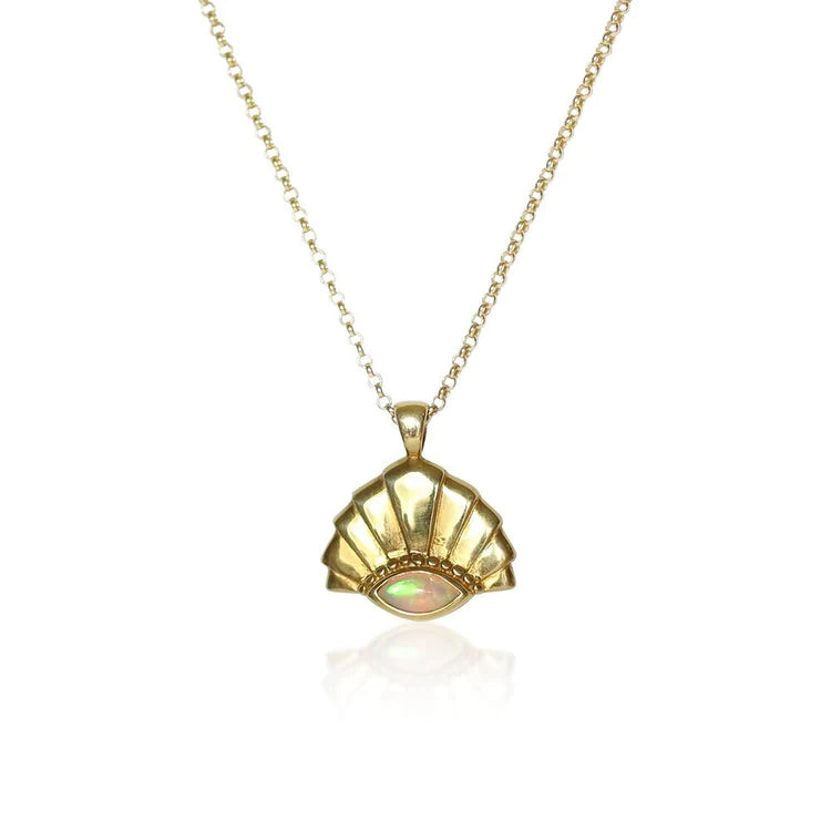 Hand-carved in the shape of an Art Déco-style shell, the Siren Necklace is an ode to my lifelong love of mermaids. I used to believe so fiercely in their existence that I was convinced my mom was one. I daydreamed of being one myself - a long-haired girl gifted with an opalescent tail, a shell purse full of pearls, and a dolphin for a best friend. I know I’m not alone in my fascination with magical ocean worlds, so here’s a necklace for those who love folklore and mermaid movies as much as I do.