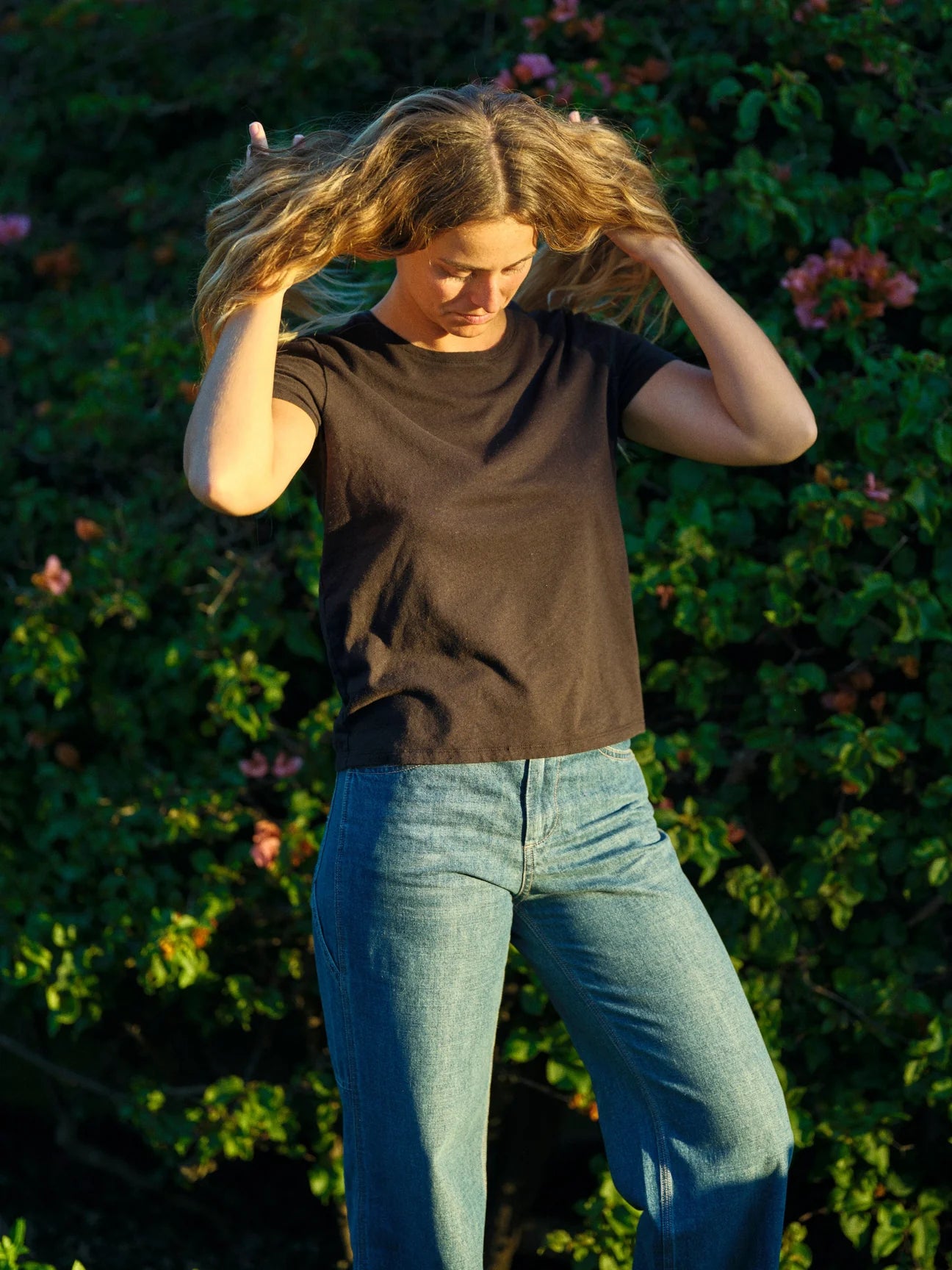 Soft hemp jersey and a flattering fit that's long enough to tuck in. This versatile staple features a classic crew neck and relaxed silhouette that drapes beautifully without feeling oversized. The hemp-cotton blend offers natural breathability and gets softer with every wash, making it your new everyday favorite.