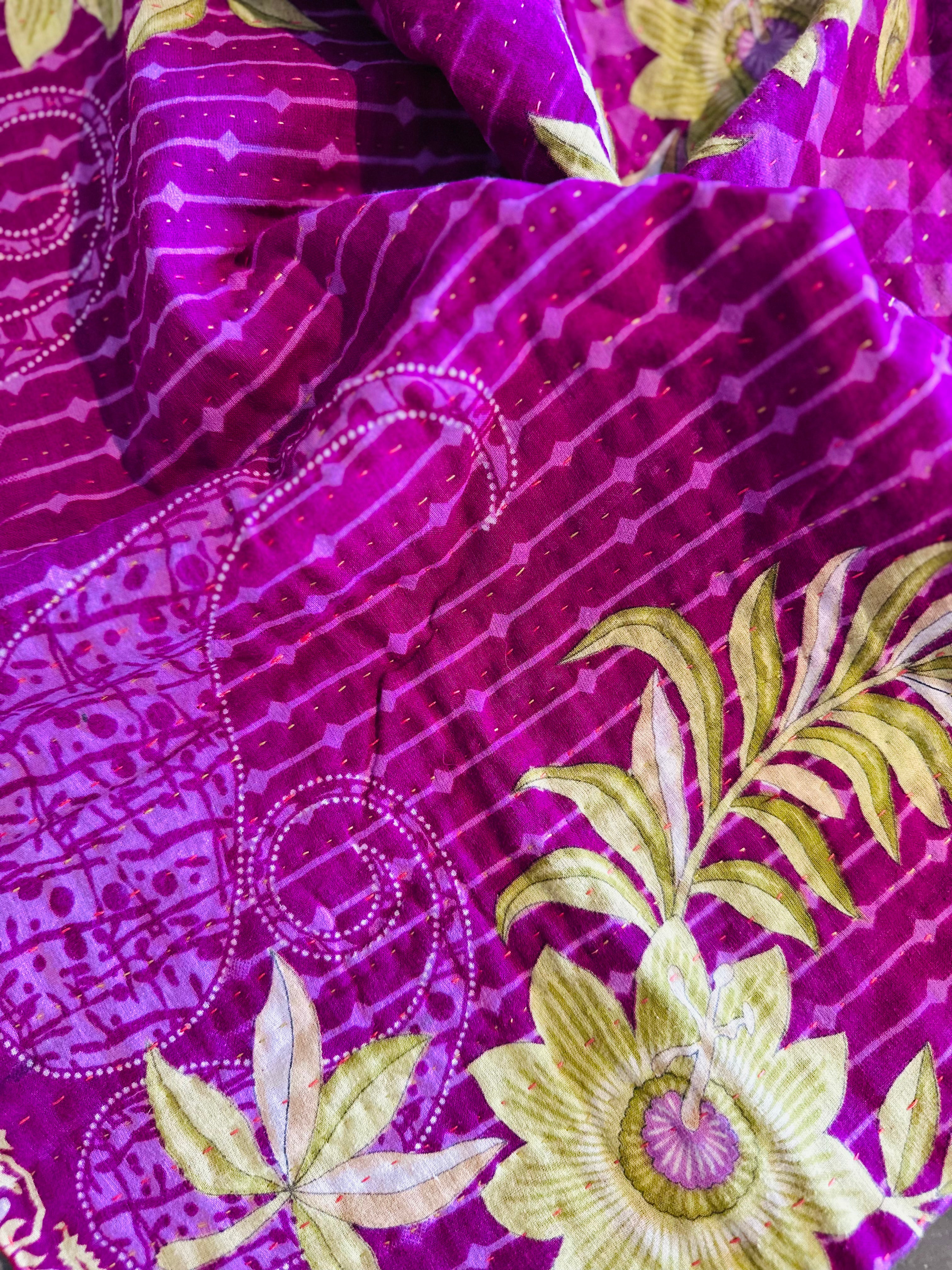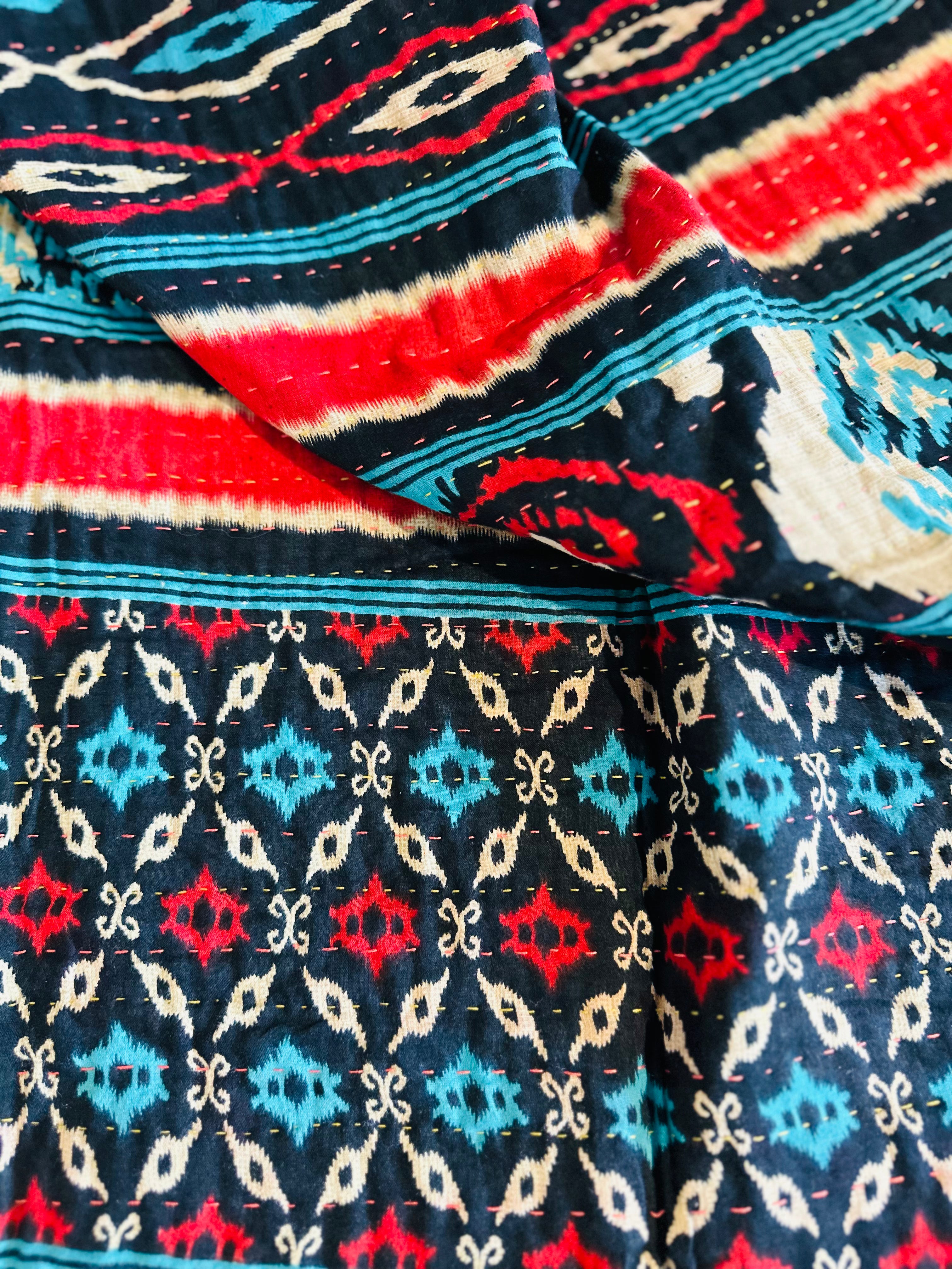 Kantha is a traditional form of top stitching which is passed down through generations.